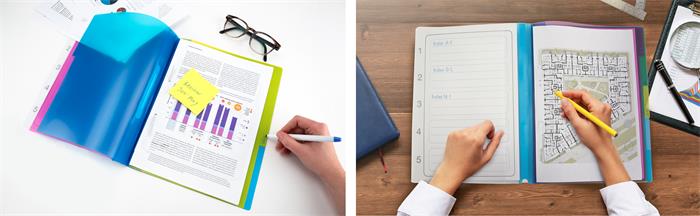 -a mappa 5 különböző színű részt tartalmaz, mindegyik saját jelölővel, és 8 cm lefűző szerkezettel ellátott