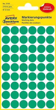 Etikett, 12 mm, kör, AVERY ZWECKFORM, zöld, 270 etikett/csomag